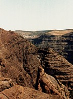 Nach den abwechslungsreichen Salami-Käse-Baguettes und je zwei Kaffee Contaros in der Strandbar von La Playa wagen wir den schwarzen Aufstieg von NN auf 850m hoch zum La Mercia. Die aufgehende Sonne, die die Luft schon sehr früh auf 35 Grad erhitzt, und unser 15 kg schweres Reisegepäck am Rücken lassen uns bereits auf halbem Wege die erste Fatahmorgana erscheinen - alter verkommener Dreschplatz in der Ferne mit Kessmannzapfanlage -. Es folgt eine Gradwanderung mit Ausflügen in die Botanik - Uli inspizierte Gomeras Kakteenfelder - zum Siesta-Ziel Aurure. Auch unser Wasservorrat gab schnell der Hitze nach und wir fanden uns zum “Auftanken“ in der erst besten Kneipe von Aurure wieder. Aufgrund der mangelnden Spanischkenntnisse versucht Flo mit Händen und Füssen die Reste des Nebentisches zu ordern, jedoch ohne Erfolg und so musste sich Uli den alten Zeiten seines einsemestrigen Spanischkursus in Würzburg entsinnen, um mit Erfolg unseren Hunger zu stillen. Das Ergebnis konnte sich wirklich sehen lassen: Polo avec pommes de terre - no ingles und französisch sprechen die a net-. Ausgeruht (nach dreistündiger Siesta) zogen wir weiter in Direction Alojera, doch schon der Einstieg in dem vom Reiseführer erwähnten ehemaligen Maultierpfad war uns durch Herras-Gittern versperrt. Ratlos standen wir vor verschlossenen Toren und verfluchten den Führer bis uns ein streunender Hund seinen Dienst als Bindeglied zum “Spaniokel“-Volk erweist (Schraudis Bezeichnung für die Gomerianer) und sein Herrchen, ein ehemaliger Legionär, uns den Weg in die Illegalität ebnet. Mit wilden Söldnergeschichten ermutigte er uns eine vier Meter hohe Baustellensteilwand zu erklettern, doch was noch keiner von uns wusste, wir hatten bis dato nur die Spitze des Eisbergs erklommen. Es folgte ein todesmutiger Abstieg mit 500 m tiefen Abgründen, widerborstigem Gestrüpp und stacheligen Kakteen nach Alojera. Wieder a-moll Einkauf mit Händen und Füssen - Schraudi war an der Reihe - ; Grablicht-Dinner am Meer mit anschließender Suche unserer Schlafstätte. 21h Bettruhe!Mit Sonnenbaden und Kaffetrinken im Strandcafé (die ham da wirklich Jazzkantine gespielt!) überbrückten wir das Warten auf den nächsten Bus mit dem Ziel Valle Gand Rey. Bereits nach wenigen Kilometern Fahrt - Berg hoch Berg runter ... - wünschten wir Hummi die Kretze an den Arsch. Wie konnte er uns nur auf solch eine Insel schicken? Der Bus quälte sich noch ca. eine Stunde über die engen Passstrassen der Insel, ehe wir Valle Grand Rey erreichten. Das Leeregefühl unserer Mägen trieb uns in den nä. Supermercado (war wohl eher ein Mercadillo!), wo wir Dosenfisch in Tomaten Sosse, subbidubbi leckere süsse Bananen und Schinken-Käse-Baguettes (die uns noch die nä. sieben Tage als Tagesmenü verfolgen) erwarben um sie am hiesigen Nudistenstrand - Playa de Ingles, unsere erste Schlafstätte - zu vernaschen. Ausser von Kili, der zum ersten Mal seine 0,5 mm "dicke" Isomatte verfluchte, und der über uns wachenden Lachmöwe wurde der Schlaf von niemanden gestört.