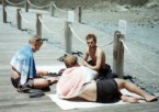 Um sieben Uhr früh wurden wir durch erzürnte "Vamos, vamos!" Rufe eines arbeitswütigen Bademeisters von unserem Schlafplatz mit Flugplatzfeeling entfernt. Selbst Flos gutes Zureden in deutscher Sprache schlug beim Ordnungshüter fehl und somit mussten wir uns am naheliegenden Strand eine Bleibe für die kommenden Tage suchen. Nach weiteren Stunden des Dösens erweckten uns erneut die Signale der Sinnesorgane. War es zuvor noch das Gehör, sind es nun die Frittiergerüche aus der Imbissbude "Ramon", die in der Nase kitzeln und uns das Wasser im leeren Magen zusammen laufen lassen. Also nix wie hin. Speck-Zwiebel-Käse-Sandwiches (um den Begriff Baguette euphemistisch zu umschreiben), Pepsi, Cerveca, 7up, Sonnenbaden, Schwimmen am Meeres-Pool und erste richtige Körperpflege (wir haben uns sogar geduscht und rasiert). Scho' war der Tag wieder rum.