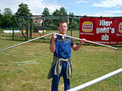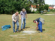 Aufbaudauer: früher 1,5h, jetzt 45min - Zeltbauingeneure: Uli, Timo, Flo, Schatzi